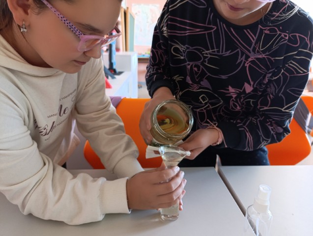 Nakon miješanja i filtriranja pripravaka, učenice će svoje mirisne vodice uliti u male staklene bočice koje će i ukrasiti.