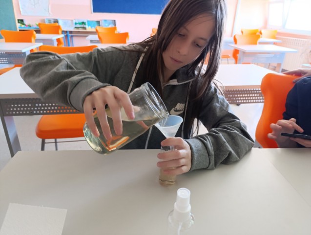 Učiteljica Renata Zuzjak je s učenicima polaznicima B1 aktivnosti Mirisna čarolija, provela radionicu izrade mirisne vodice od lavande i naranče. Cilj aktivnosti bio je upoznati učenike s prirodnim izvorima mirisa, načinima izrade jednostavnih mirisnih pripravaka te potaknuti kreativnost i ekološku svijest kroz izradu prirodne mirisne vodice.