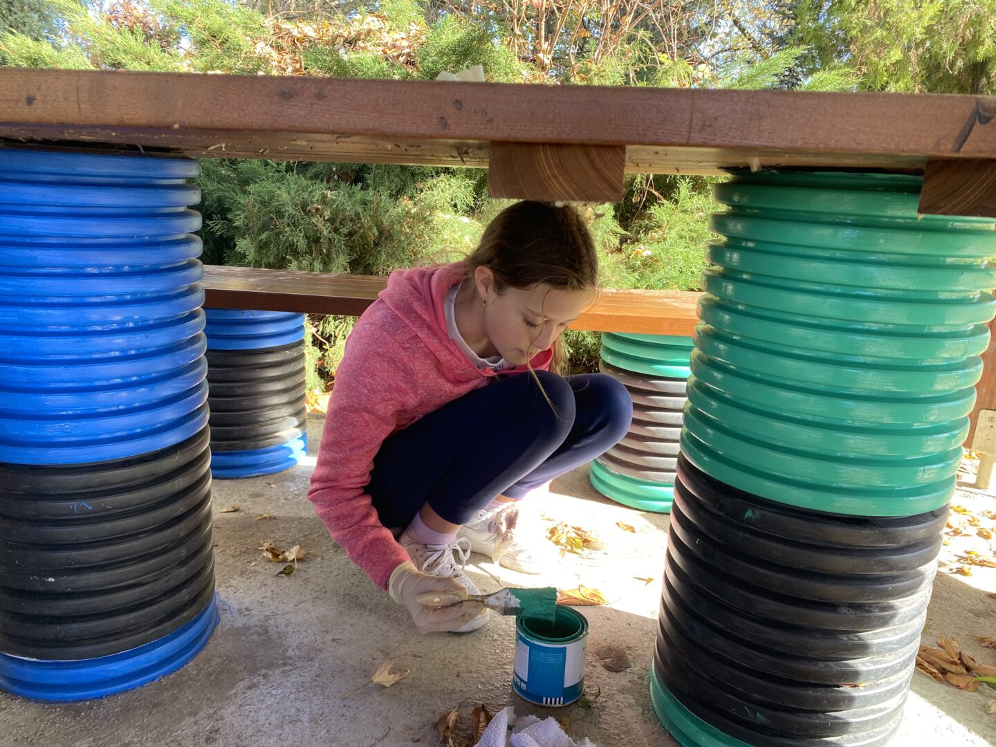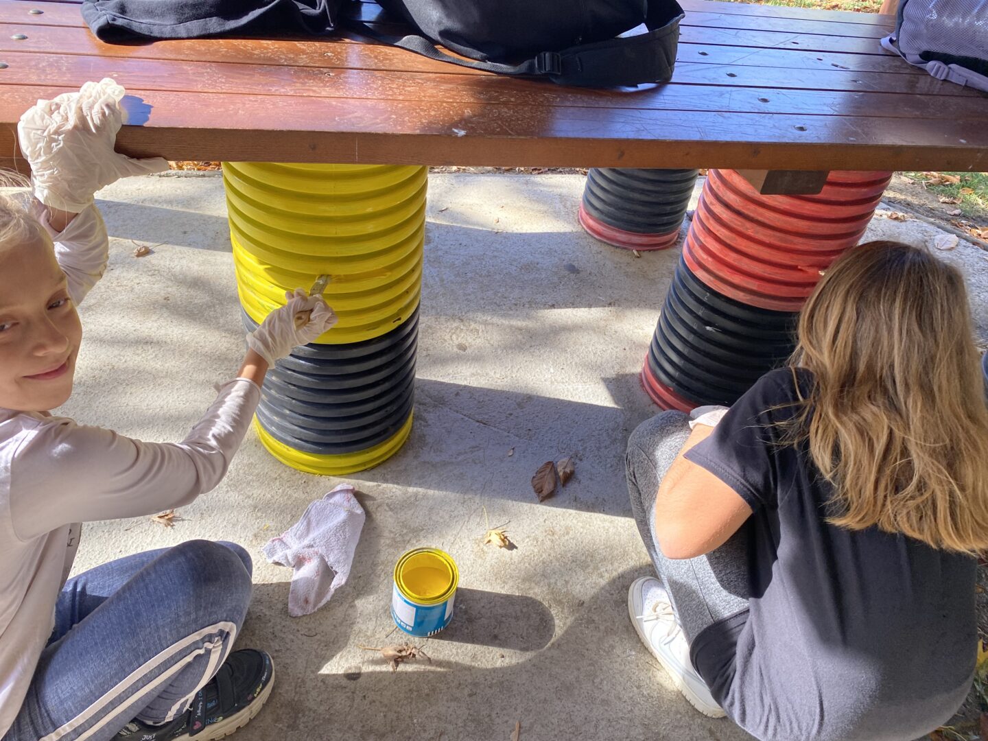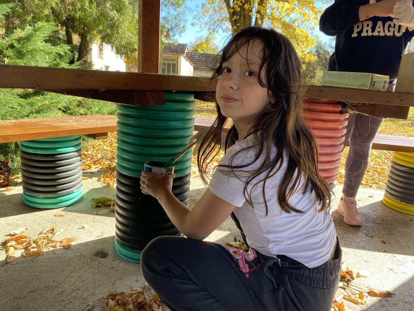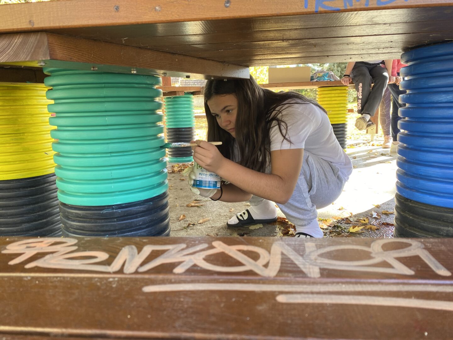 Polaznici kreativne radionice uvijek nađu dobar razlog da borave u školskom dvorištu — da budu kreativni, vrijedni, ekonomični i, najvažnije, radosni! Ovoga puta naš je cilj bio udahnuti novi život crnim plastičnim držačima stolova u sjenici, koji su godinama strpljivo služili, ali izgubili svoj prvotni sjaj.