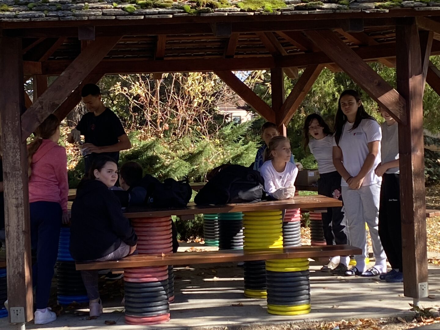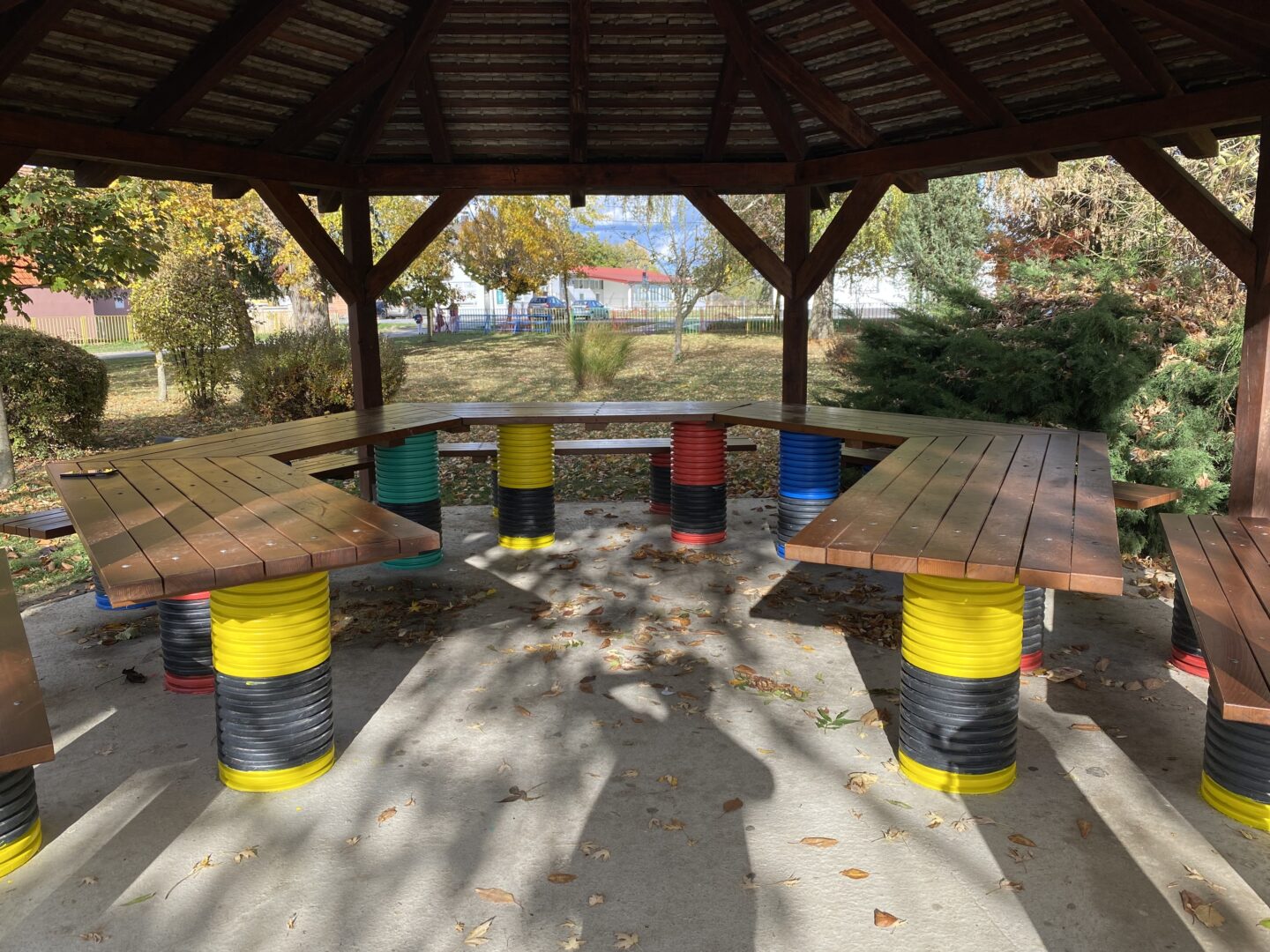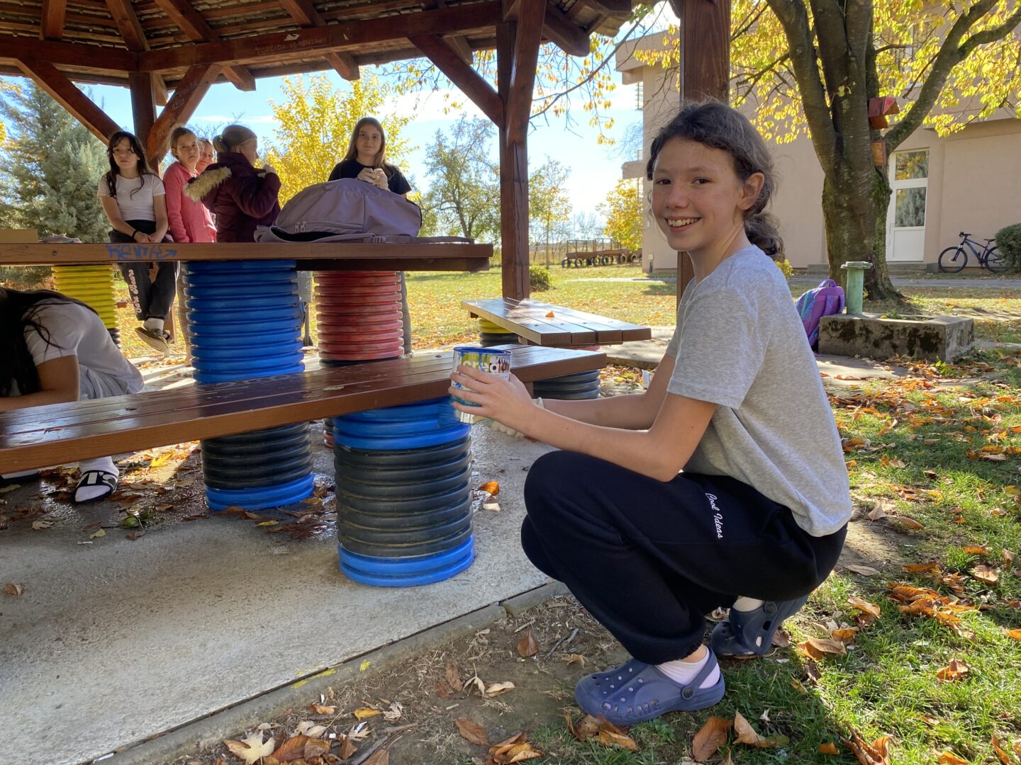 Tako su tijekom listopada 2025. neugledni, jednolični stolovi dobili potpuno novo ruho i pretvorili se u šareno, toplo i privlačno mjesto okupljanja. Danas naša sjenica više nije samo praktičan kutak — postala je veselo uređeno, inspirativno i uvijek rado posjećeno mjesto našeg školskog dvorišta.
